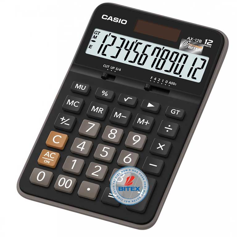 AX-12B là mẫu máu tính bỏ túi nhỏ gọn của Casio. Cung cấp giải pháp tính toán cơ bản, với màn hình hiển thị 12 số.